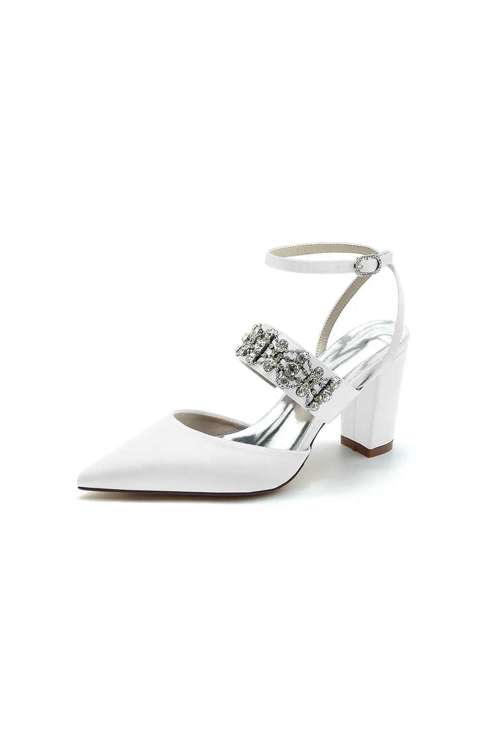 Add a touch of glamour to your prom, wedding, or evening look with these chic Black Satin Pumps. Featuring sparkling rhinestone accents and a sleek silver accent, these chunky heels are perfect for party shoes or bridesmaid shoes. The pointed toe and slip-on design ensure a polished, comfortable fit for any occasion, making them a must-have for your special events.