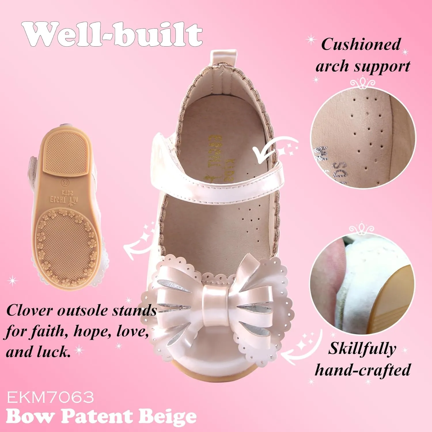 - STYLISH BOW ACCENT: A sleek bow on each shoe adds a touch of elegance to these mary janes for girls, combining a classic look with modern flair. Youll want these for your toddlers if they need dressy shoes, from size 3 to girls size 13.