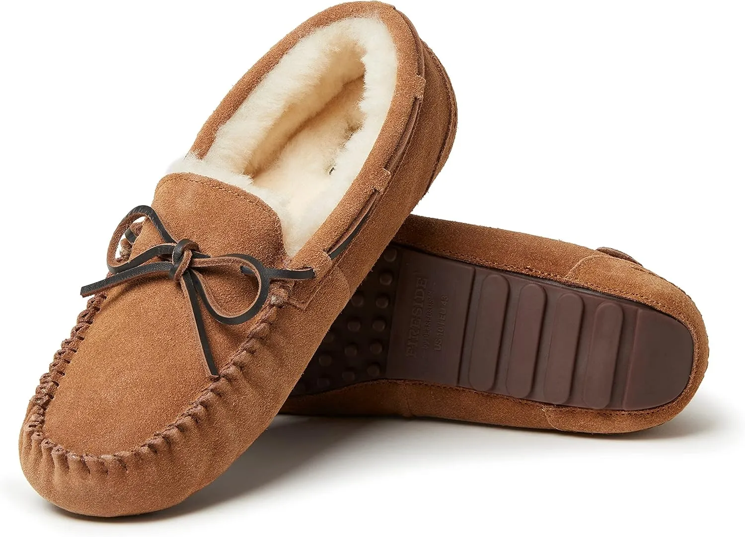 Fireside by Dearfoams Men's Victor Shearling Moccasin with Tie Slipper