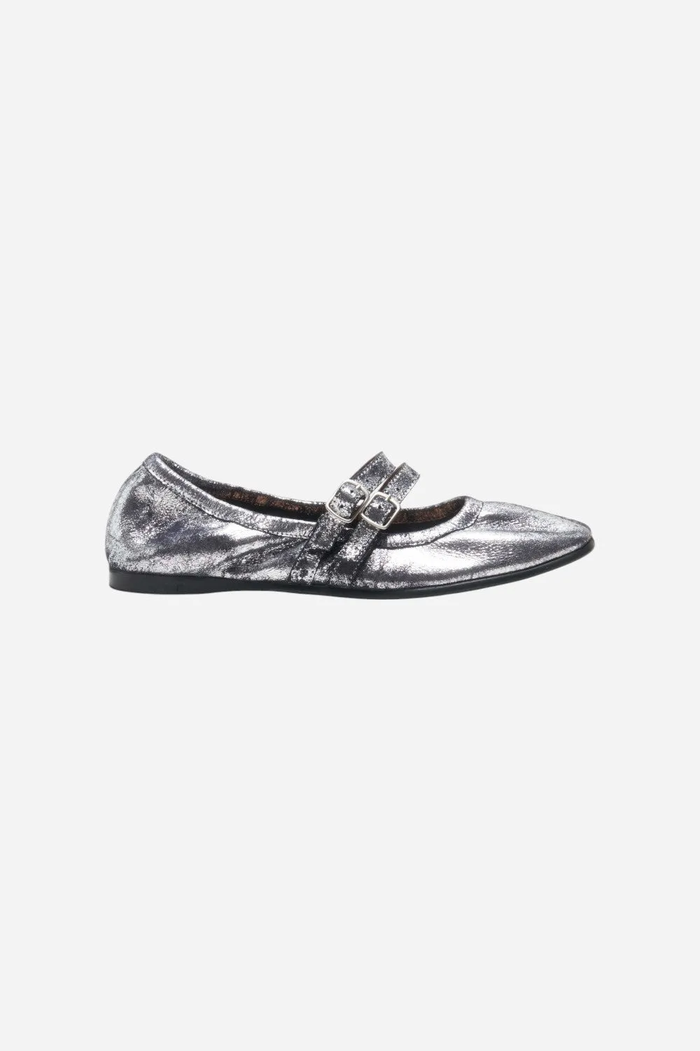 So cool and classic, these timeless ballet flats are featured in a soft leather fabrication and slip-on style with double-strap detailing and sleek square toe.