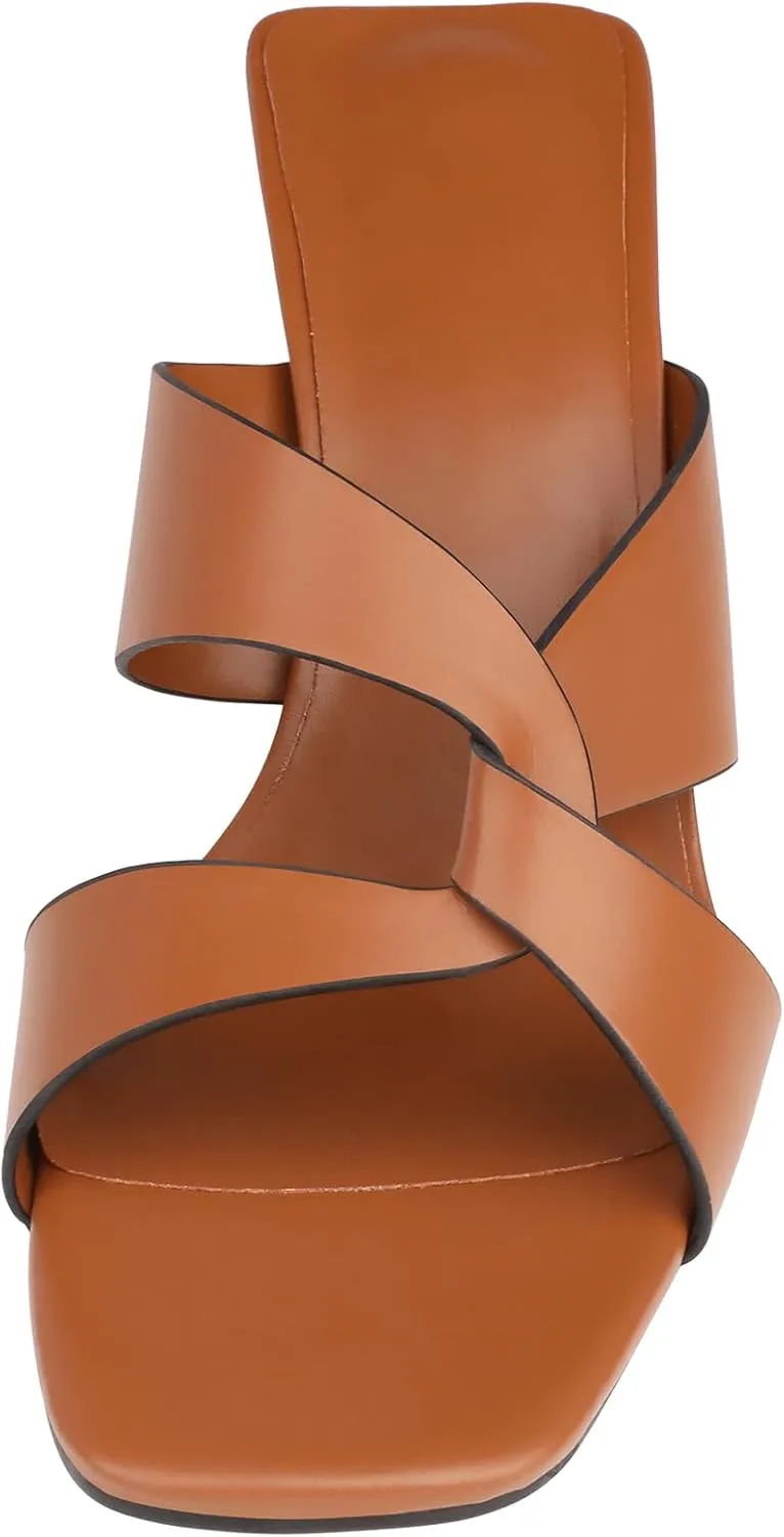 - Heeled Sandals for Women: Classic wide cross criss straps heeled mules sandals are a total must have for your next night out! The mules slip on heels and solid tone with microfiber leather crisscross strap, a sturdy block heel, square toe. Easy to slip on and off, offering convenience and effortless style.