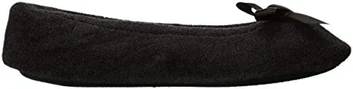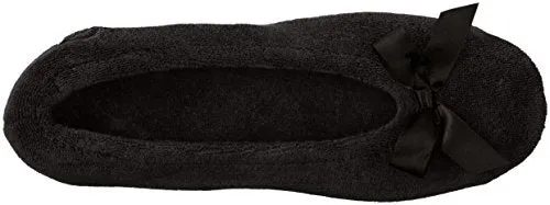 Details: These supremely soft slippers will transport you to a relaxing spa with every step. isotoner women's classic terry ballerina slippers are made with cotton-blend terry for ultimate softness and breathability. i so flex comfort insoles conform and flex with your feet for a secure, custom fit to suit your active lifestyle. features low profile rubber outsole for increased stability and support. care instructions: machine wash cool water, dry flat away from heat.