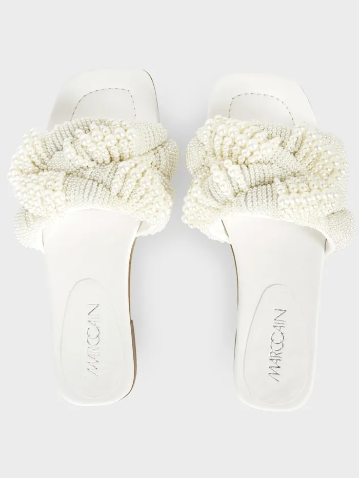 Marc Cain White Mules With Pearls WB SG.10 Z10 COL 100