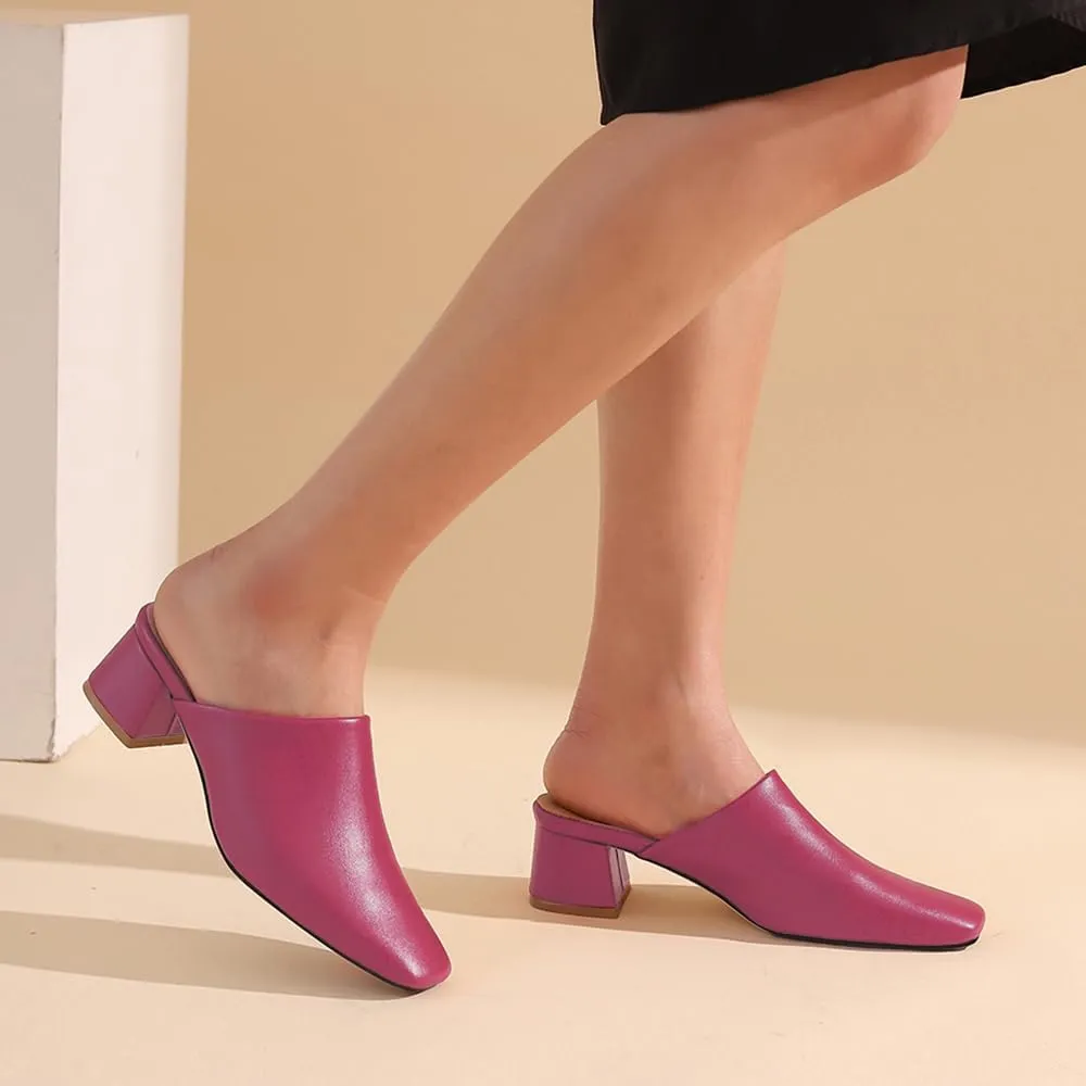 • PARAMETER INFORMATION: Comfortable Women chunky heel mules closed toe have a reasonable 2 block heels height, and Square toe mules with heel are classic and cool. Backless mid heel dress shoes liberate your feet and give you a comfortable walking experience. Comfortable matte leather mules heels for women, elegant every step you take, Non-slip soles ensure stable walking.