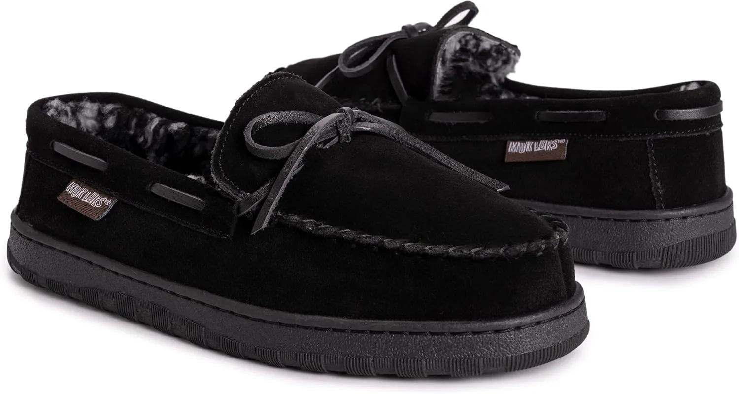 - TREAT YOUR FEET TO A NEW PAIR OF MUK LUKS: Our Paul printed berber suede moccasin slippers will make you never want to leave the house. Soft, durable, and easy to care for, making them the perfect house slipper!
