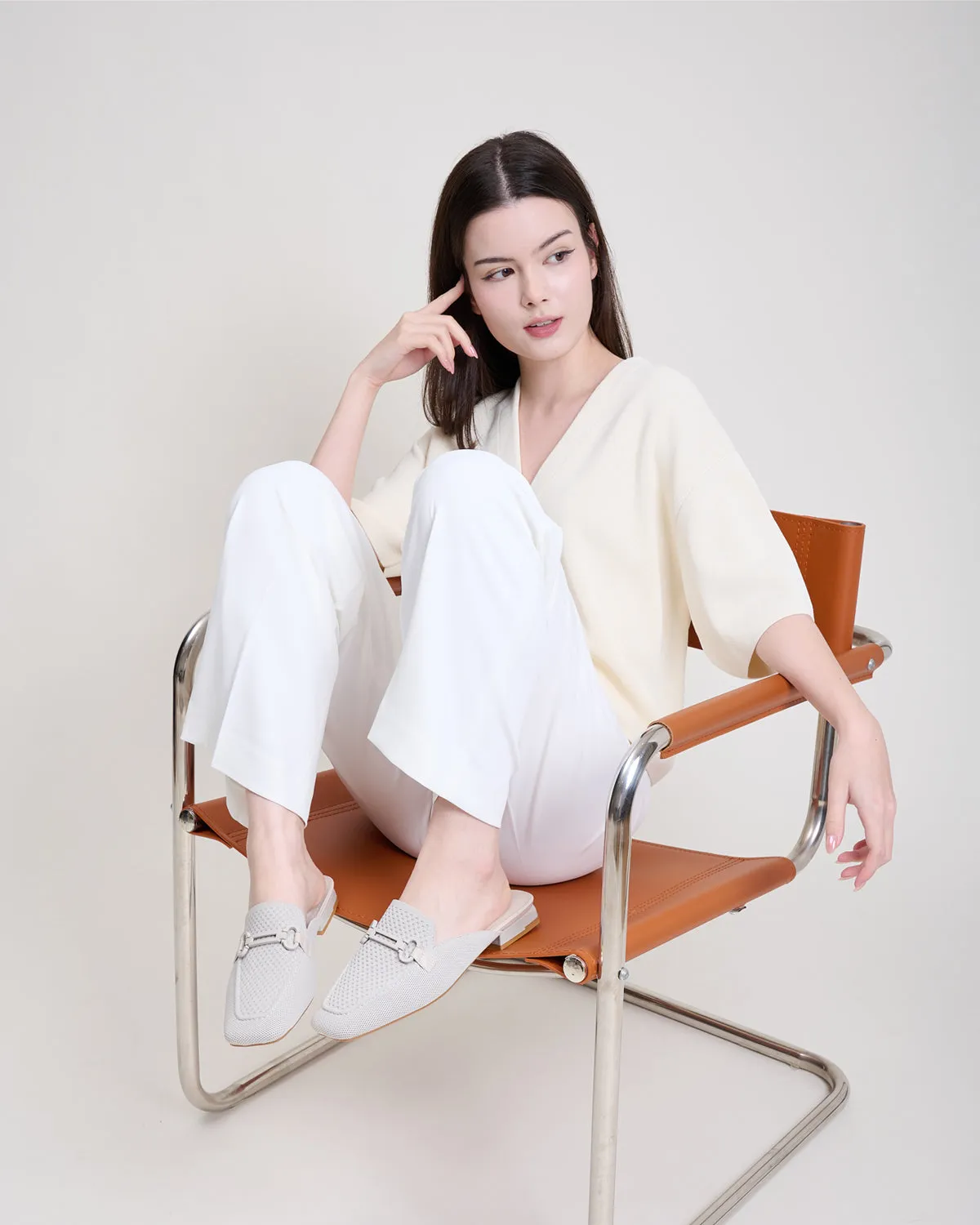 Meet Patia Mules, a new off-duty essential that have the power to make you go from casual to chic! These irresistible beauties are perfect for adding a touch of class and elegance to your office look. Made with soft knitted fabric for all-day comfort, they feature a squared toe and a tone-on-tone buckle detail that brings the flair factor up a notch. Pair them with a draped knit top for that effortlessly polished vibe!