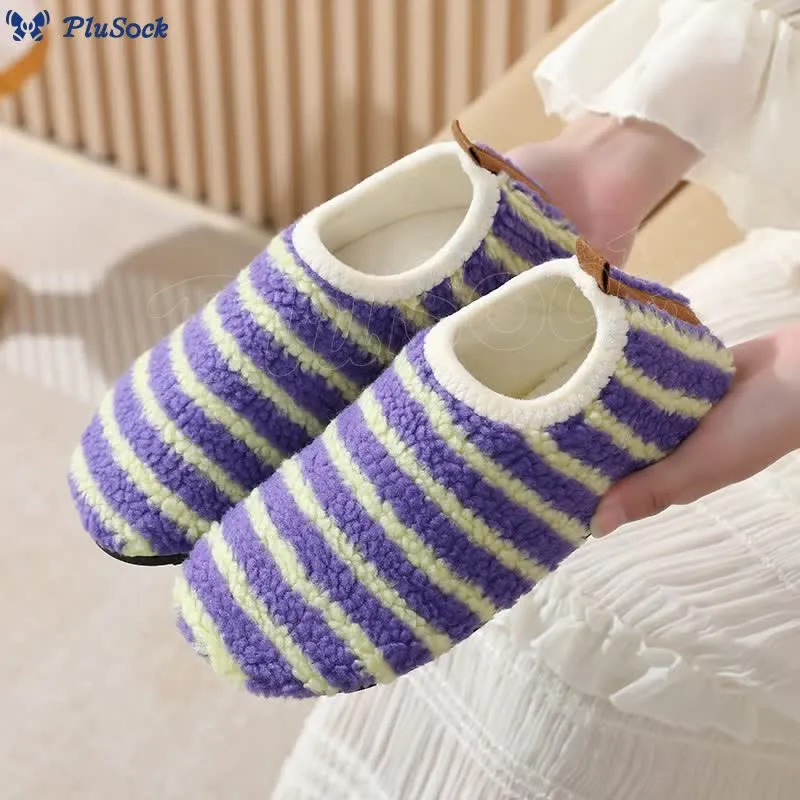These house slippers keep your feet warm and cozy, offering comfort for chilly evenings. They're designed for wide feet and are perfect for relaxing at home or in a cabin. Anti-skid grippers on the sole provide excellent traction on smooth surfaces, preventing slips. Ideal for those who love barefoot-style shoes, these fuzzy slippers are perfect for anyone needing warmth and comfort.
