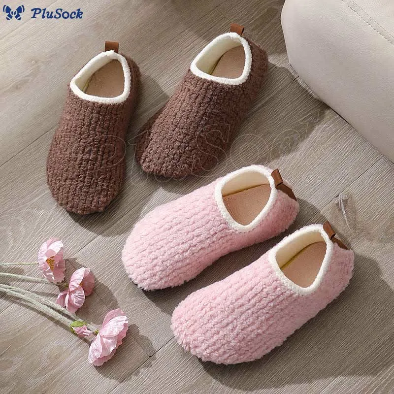 These house slippers keep your feet warm and cozy, offering comfort for chilly evenings. They're designed for wide feet and are perfect for relaxing at home or in a cabin. Anti-skid grippers on the sole provide excellent traction on smooth surfaces, preventing slips. Ideal for those who love barefoot-style shoes, these fuzzy slippers are perfect for anyone needing warmth and comfort.