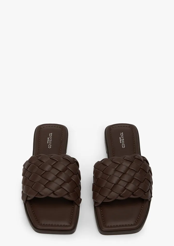 Rachel is the one we've been waiting for. Simple and stylish with a modern silhouette, this black slide features a wide upper strap across the foot with criss-cross leather detailing for an extra touch.