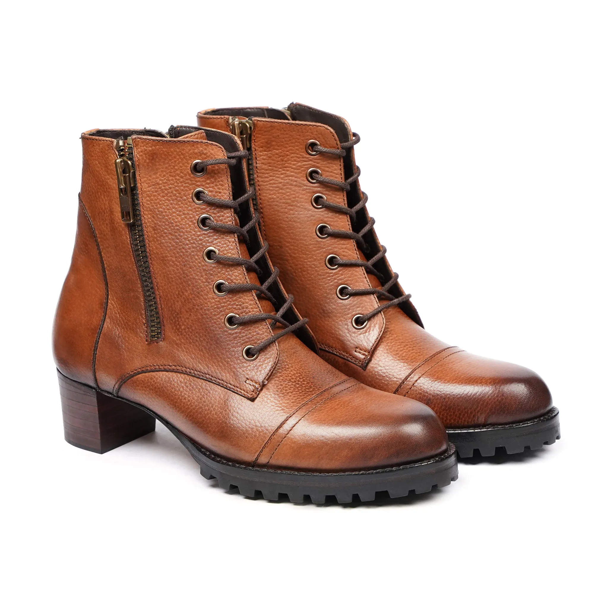 Sara - Ladies Burnished Tan Calf Leather Ankle Boot sound like a sophisticated and versatile choice. The combination of materials adds texture and interest to the design. These boots could be perfect for both casual and more formal occasions. The burnished tan color makes them versatile enough to coordinate with a variety of outfits, while the ankle height adds a modern touch. They sound like a stylish and practical addition to any wardrobe.