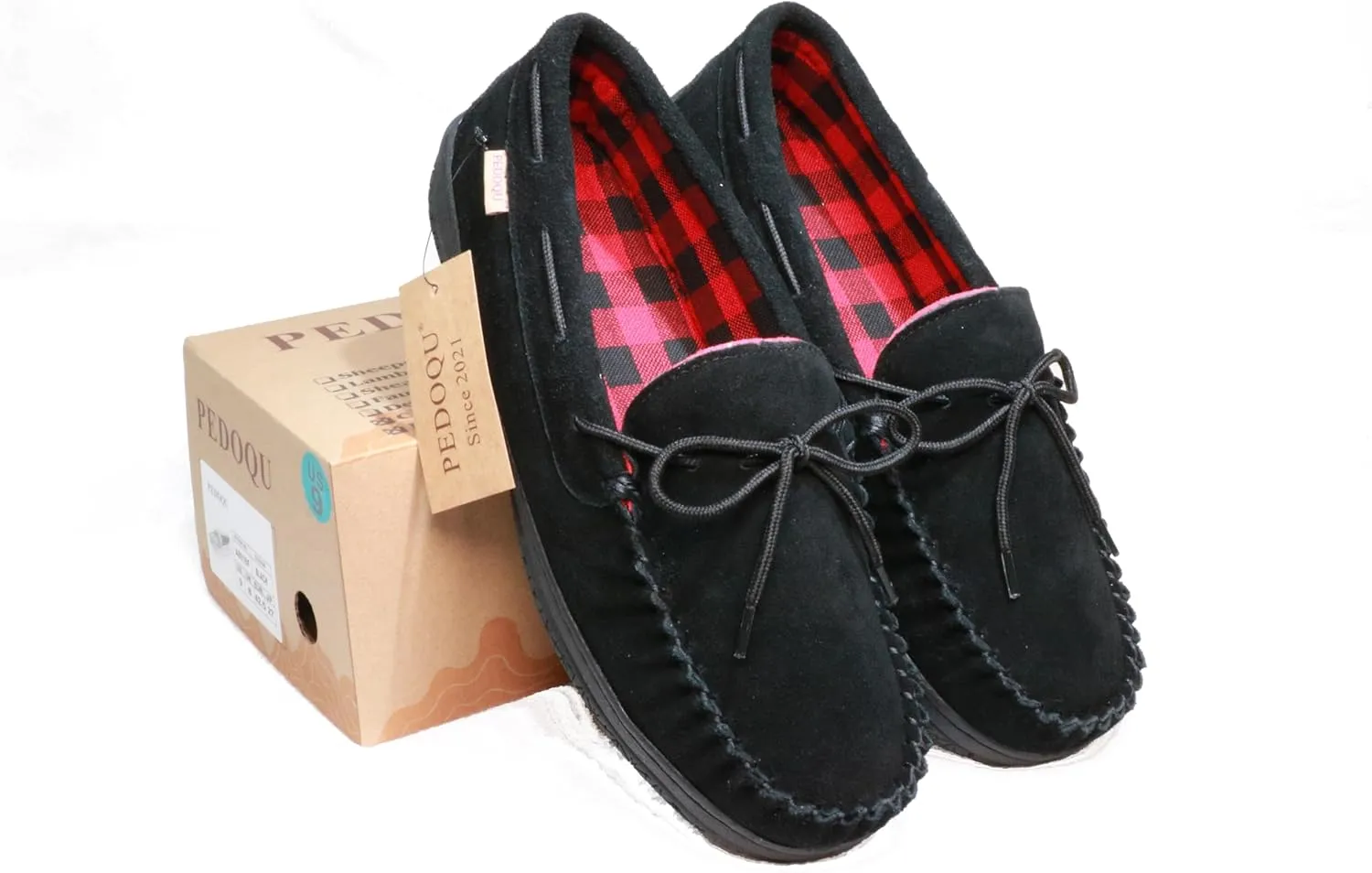 - Indoor/Outdoor Men's Moccasin slipper: no need to change shoes! PEDOQU men's non-slip slippers are easy to put on and take off, and can be used both for going out and wearing at home. Super convenient, comfortable and warm