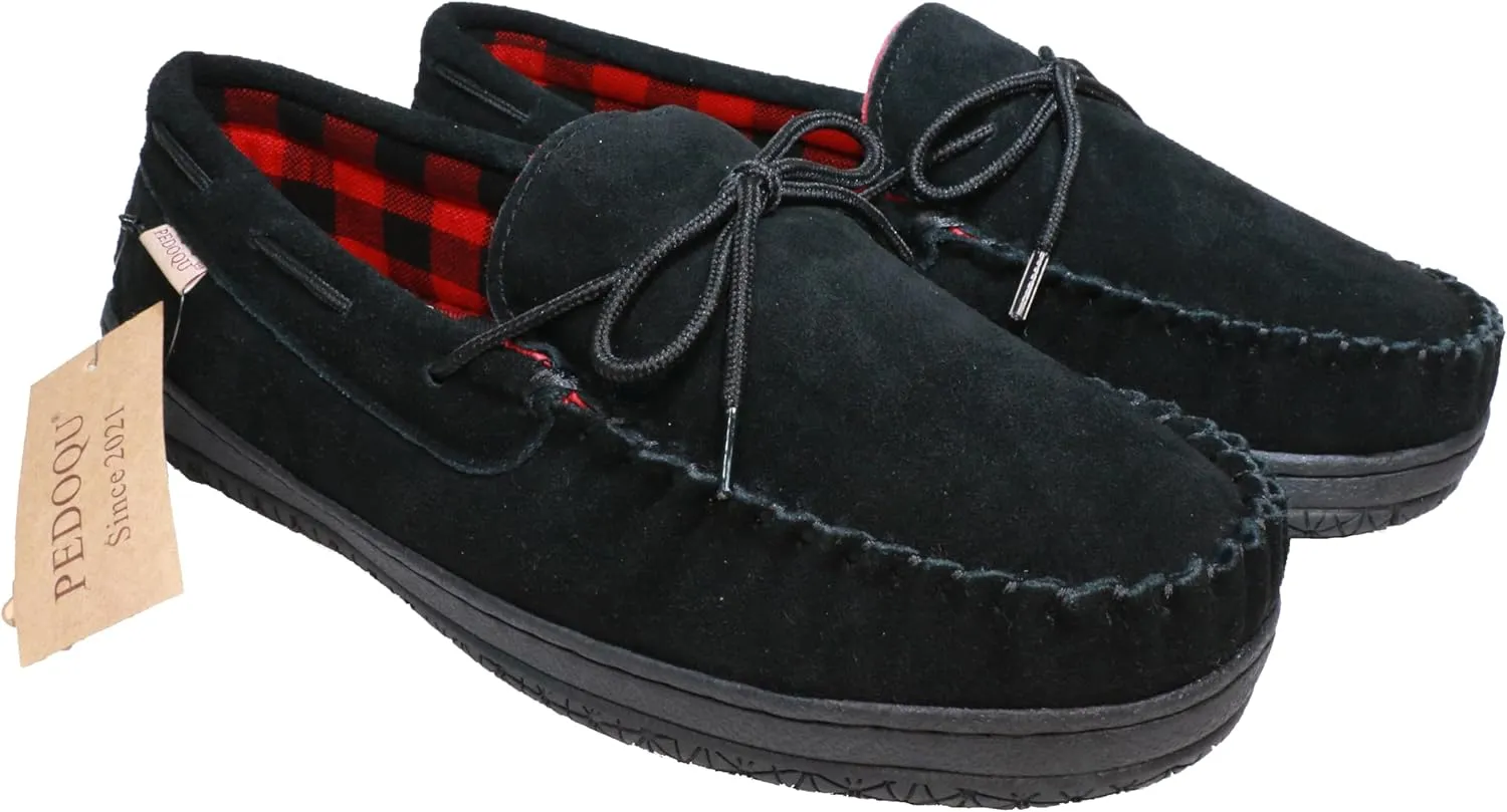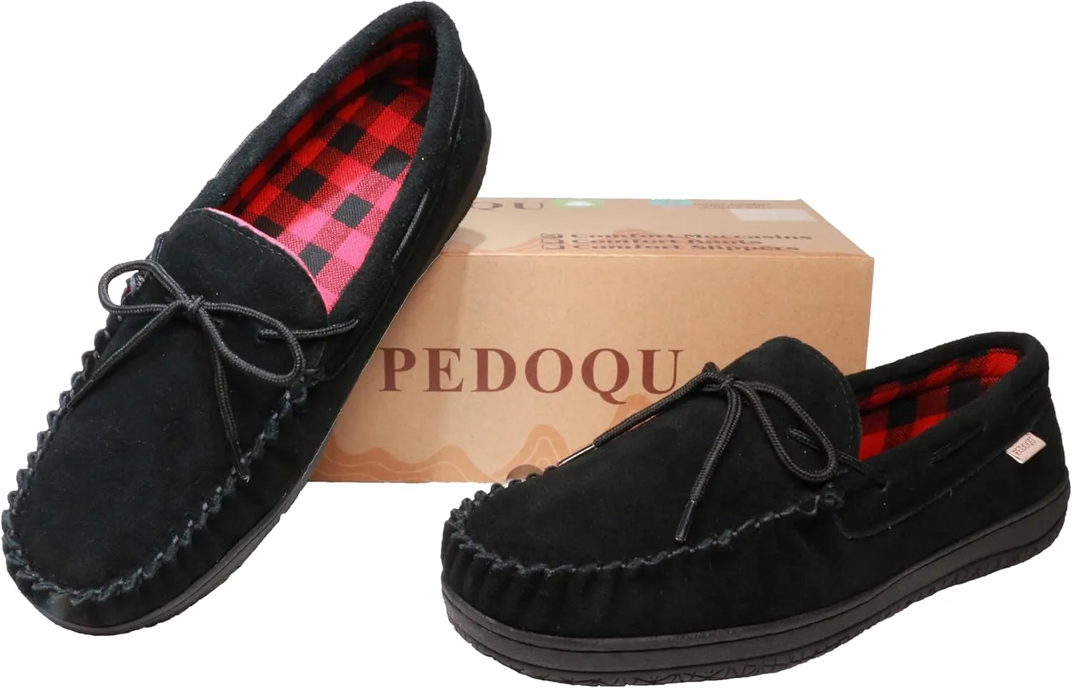 • Indoor/Outdoor Men's Moccasin slipper: no need to change shoes! PEDOQU men's non-slip slippers are easy to put on and take off, and can be used both for going out and wearing at home. Super convenient, comfortable and warm