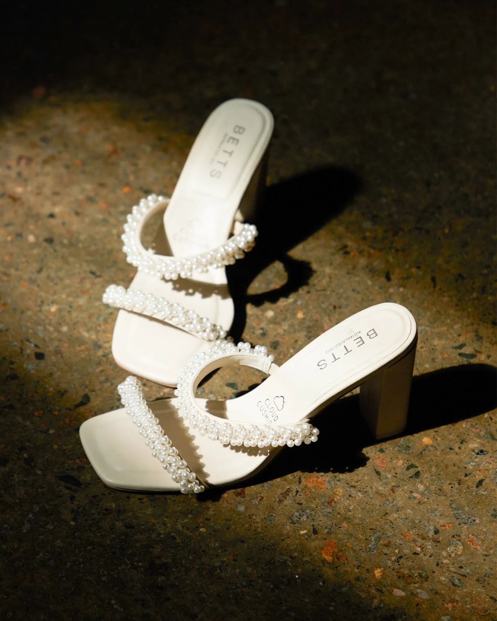 Studded with pearl bead accents, STARLING juxtaposes delicate details with sculptural, statement-making heels. The result? 100% chic, classy and head-turning style.