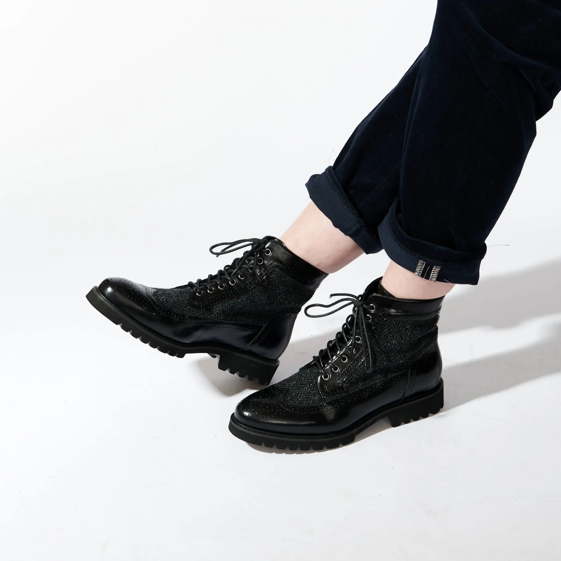 From country to city, The Huntress are a perfect addition to your footwear collection this season. Made with Buffalo Leather and Harris Tweed®, these boots are both stylish and practical. The soft leather provides a comfortable, breathable shoe, great for walking in town & incredibly light-weight.