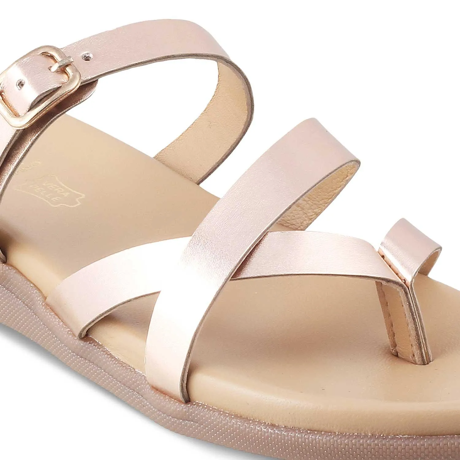 The Tochelle Champagne women's flats are famous for adding the perfect amount of glam to your look. This pair of flats for women online features stylish criss-cross straps that look super elegant and stunning. Team this footwear for women with a brown top, black jeans, and a delicate bracelet.