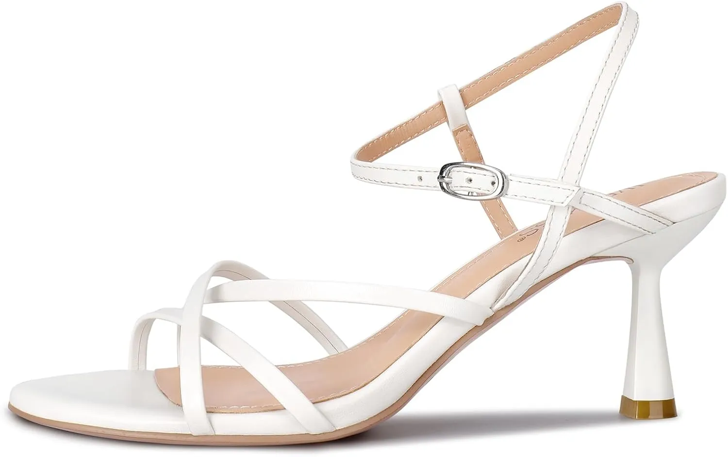 - Heel height is 2.72"/6.9cm. White strappy low heels for women is very stylish but simple.