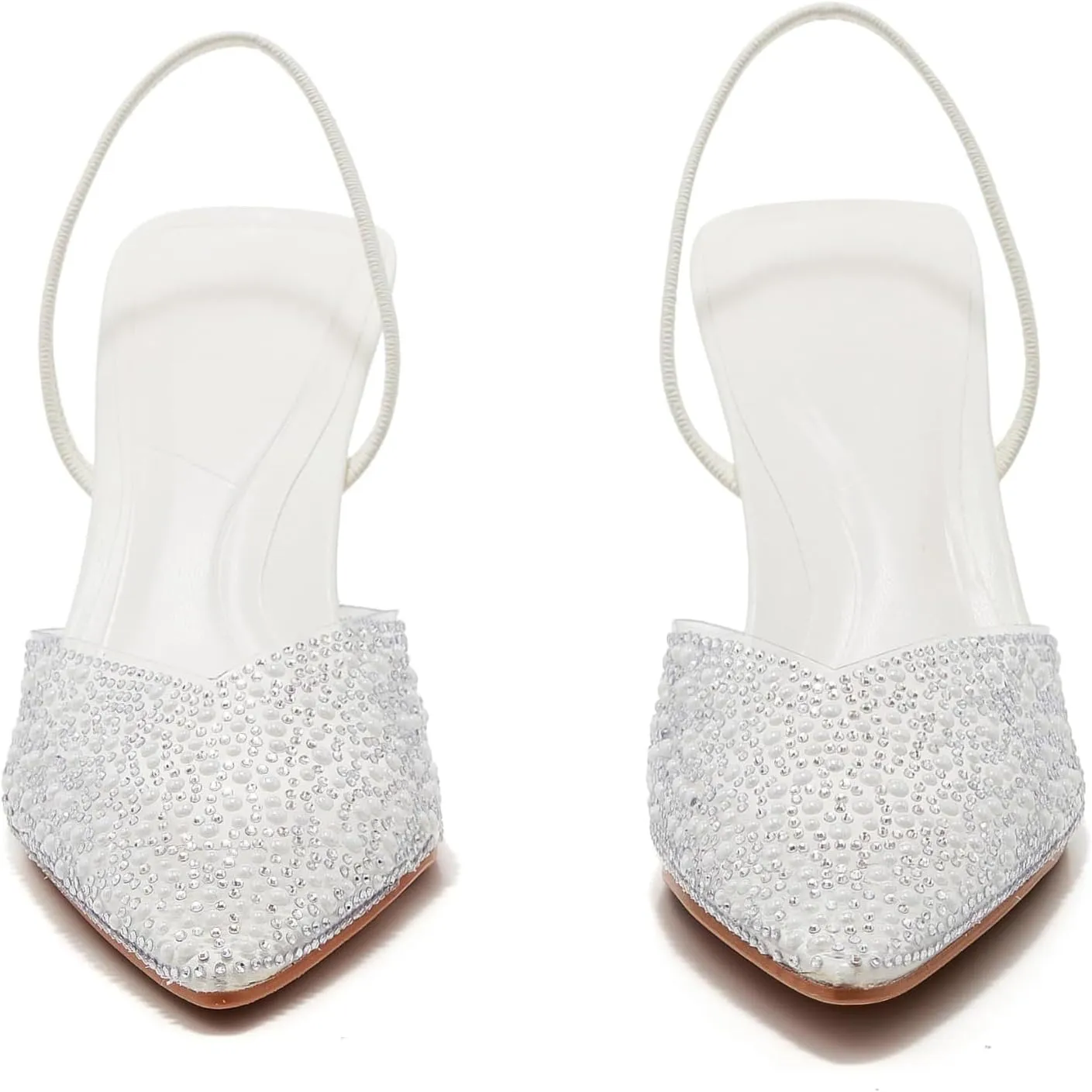 Women's Pointy Toe Slingback Heels Pearl Kitten Heels Sparkly Rhinestone Heeled Sandals Slip On Wedding Party Shoes